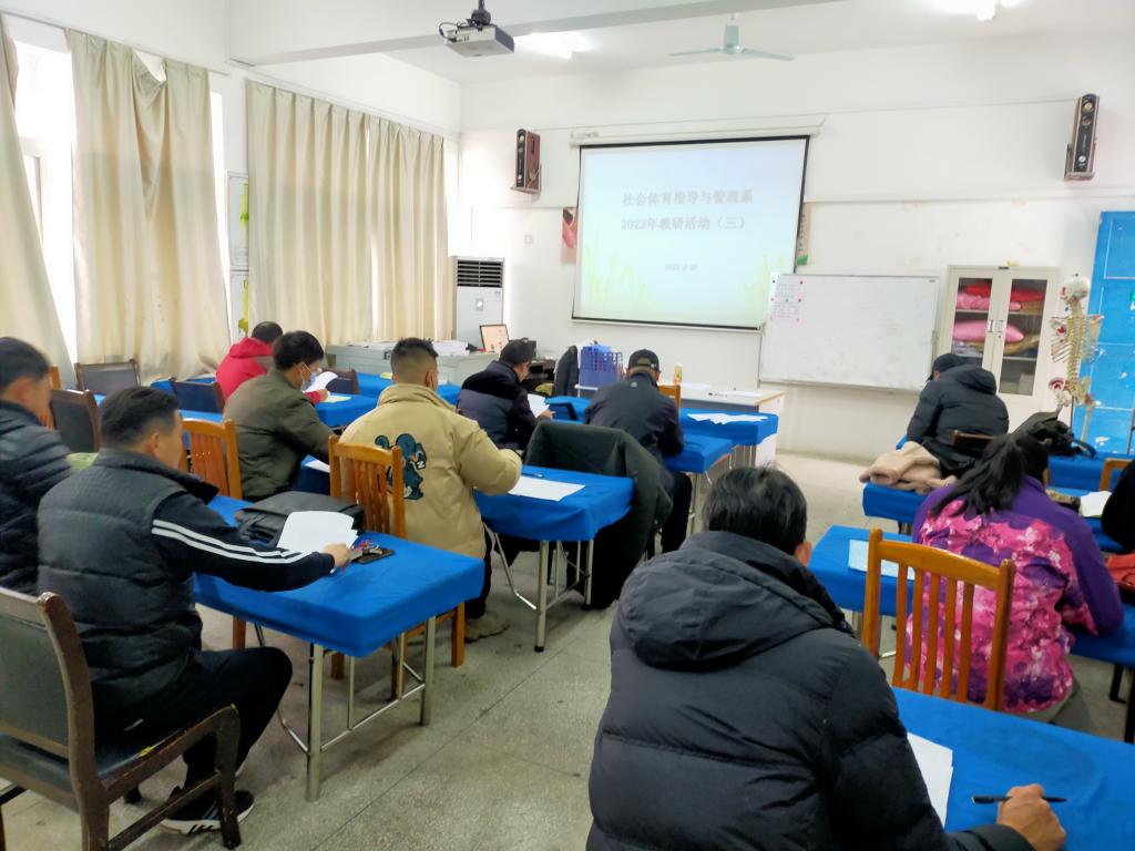 (通讯员 夏昌辉)2022年2月28日下午,海角社交网页版社会体育指导与管理系在S3-302教室开展“为学生办实事”活动暨2022年第三次教研活动。本次活动以提高人才培养质量为主题,着重研讨社会体育指导专业人才培养方案,对“毕业要求”部分作了细致的调整。为落实培养方案的各项要求,支部要求每位党员教师发挥带头作用,明确年度工作目标,认领工作任务。支部定期公布推进情况。为引导学生达成毕业要求,克服在校期间的各种困难,支部进一步推进党员联系学生等“六个一”工作。会后的社体教师在3#301教室与20级学生现场对接,建立起指导和帮扶关系。