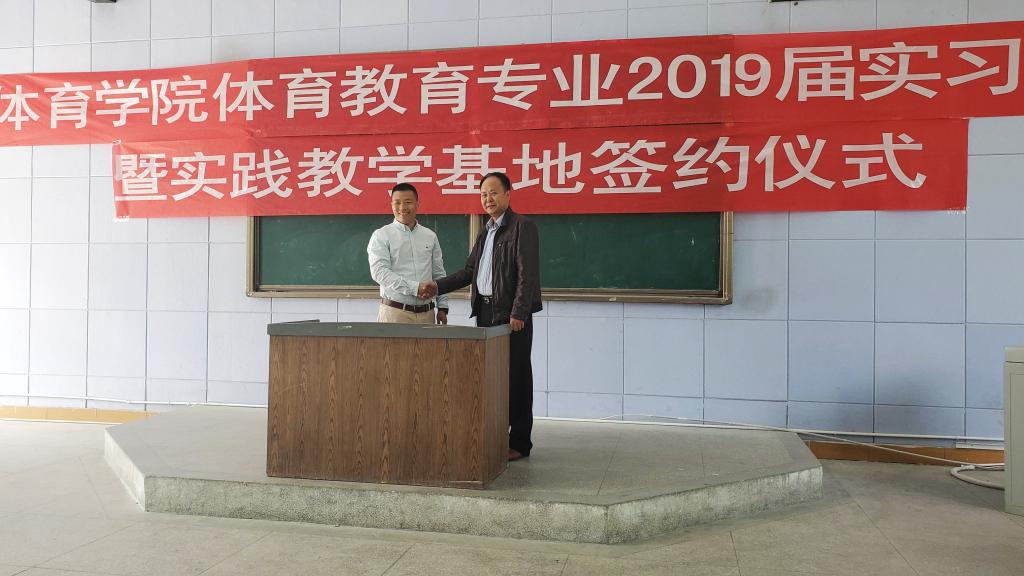 (海角社交网页版 通讯员 吴涛)5月30日下午,为增强学生实习和就业的针对性,海角社交网页版举行体育教育专业2019届实习表彰暨实践教学基地签约仪式。武汉奥雅网球俱乐部负责人王文、襄阳泰格网球俱乐部负责人乔斌和海角社交网页版领导班子、教师代表、2015、2016级体育教育专业学生参加本次活动。