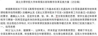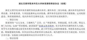 制定了《湖北文理学院大学体育俱乐部制教学改革实施方案》和《湖北文理学院本科生大学体育课程修读方案》