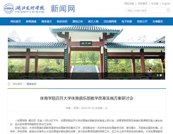 疫情期间,通过腾讯会议平台,在线召开了3次大学体育俱乐部制教学改革实施方案研讨会,会议详细研讨了《湖北文理学院大学体育俱乐部制教学改革实施方案(讨论稿)》及《湖北文理学院本科生大学体育俱乐部课修读办法(讨论稿)》。确定了以学生“会员制”为突破口,打造学生“自主选项目、自主选时间、自主选老师”的教学模式,采用“小班、大班、训练班、活动课、辅导课、竞赛课、文化传播”等多种授课形式。同时,要求每位老师要树立改革的意识,凝聚力量,完善机制,确保质量,改掉传统教学的方式,做好顶层设计方案,创建一个具有湖北文理学院特色的大学体育教学模式,确保大学体育俱乐部教学改革的成功。