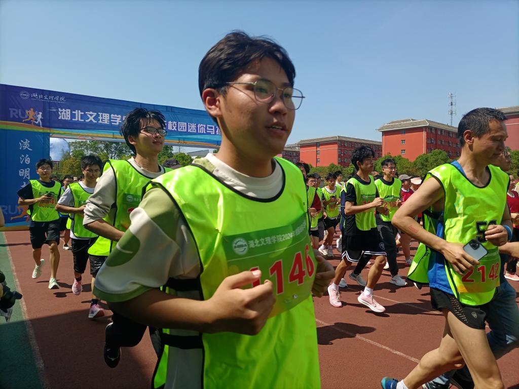 党委书记吴超仲宣布湖北文理学院2024年首届校园迷你马拉松开幕,随着发令枪响,全校500多名师生跨过起点,向终点迈步跑去。选手们挥洒汗水,奋力奔跑,一路观赏美丽的校园风景,享受马拉松的乐趣。