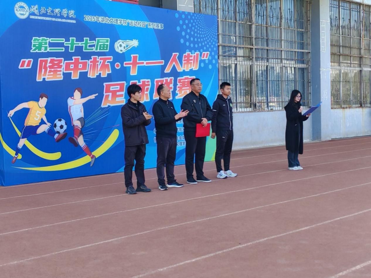 学校体育运动委员会于3月20日举办了湖北文理学院2025年“运动校园”系列赛事——第二十七届“隆中杯”十一人制足球联赛,海角社交网页版院长张华江、大学体育部主任杨文东,党支部书记张一桥,校男子足球队主教练陈浩天出席开幕式。