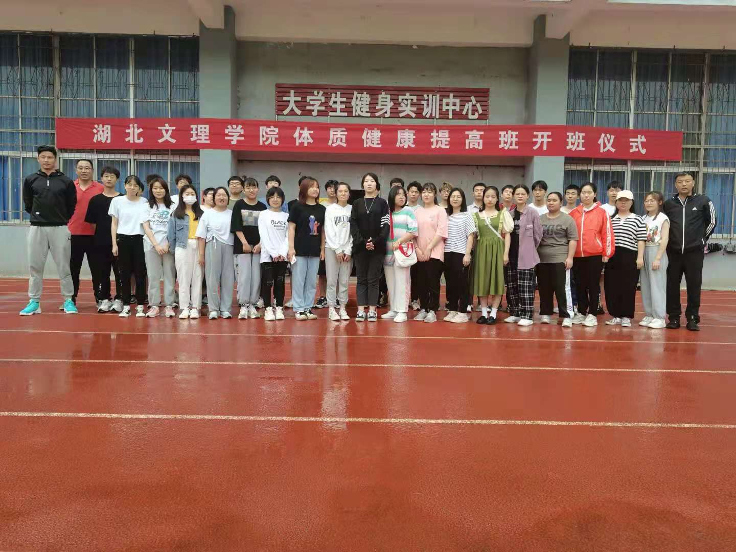 (海角社交网页版 通讯员 朱大清)5月24日下午, “湖北文理学院首期学生体质健康提高班” 在南区田径场训练馆举行开班仪式,海角社交网页版大学体育部主任朱大清、党支部书记杨文东、教练李胜利和首期40名学员参加了开班仪式。
