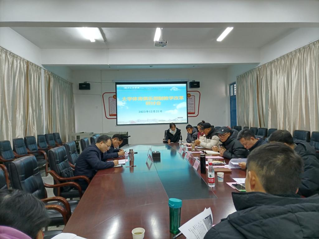 会上,教务处处长聂军对俱乐部制教学改革提出指导性建议。大学体育部主任朱大清汇报了俱乐部制教学改革总体设想、存在的问题和解决思路,大学体育部党支部书记杨文东汇报了俱乐部竞赛活动情况,排球俱乐部课程负责人谢文韬、舞龙舞狮俱乐部课程负责人夏昌辉、健美操和啦啦操俱乐部课程负责人王美楠依次就俱乐部教学改革推进情况进行了汇报。