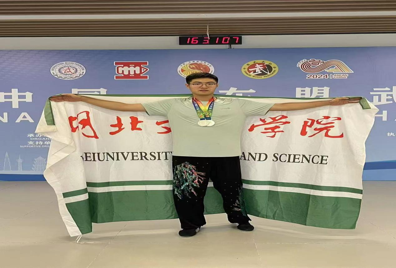 在为期7天的比赛中,我校代表队队员赵家望同学分别在男子甲C组单器械和劈挂两个项目中荣获银牌。